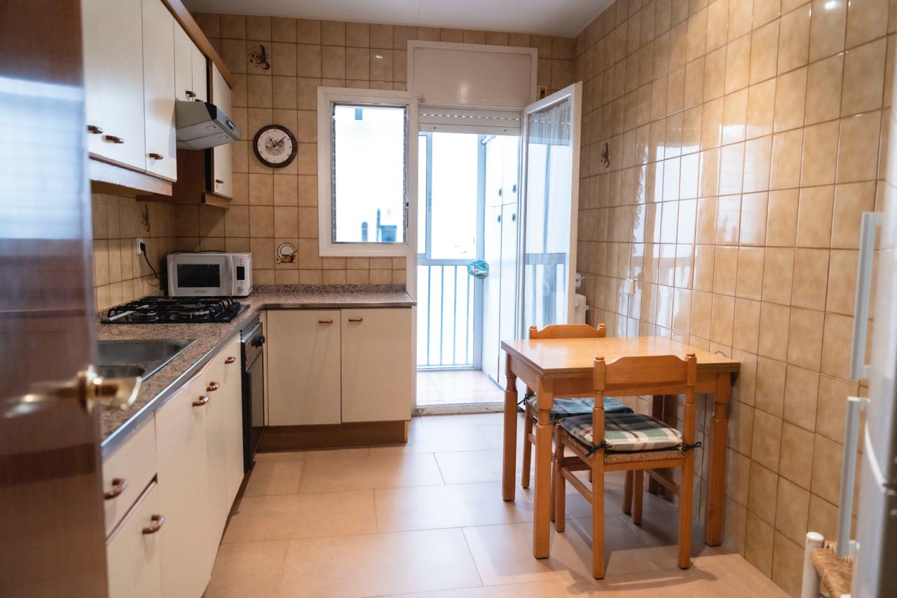 El pis es distribueix amb un ampli menjador que connecta amb la terrassa. A més disposa de cuina funcional, 4 habitacions i dos banys.